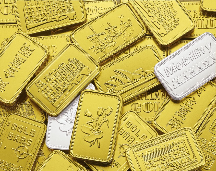 Gold bars made of chocolate